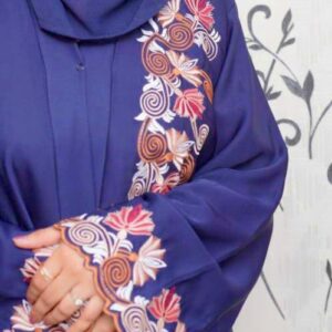 Our Front Open Abaya, adorned with exquisite flower embroidery along the flare ,sleeve ends and on the border of hijab
